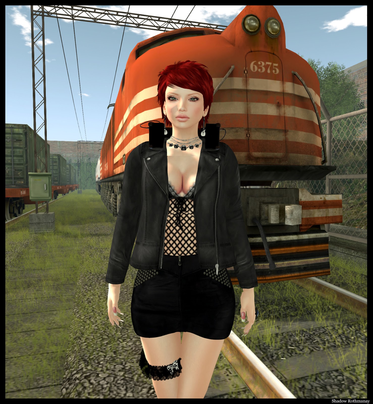 I wear the sexy studded skirt created by Cracked Mirror for the FaMESHed's current round. Textures and details are really great.
